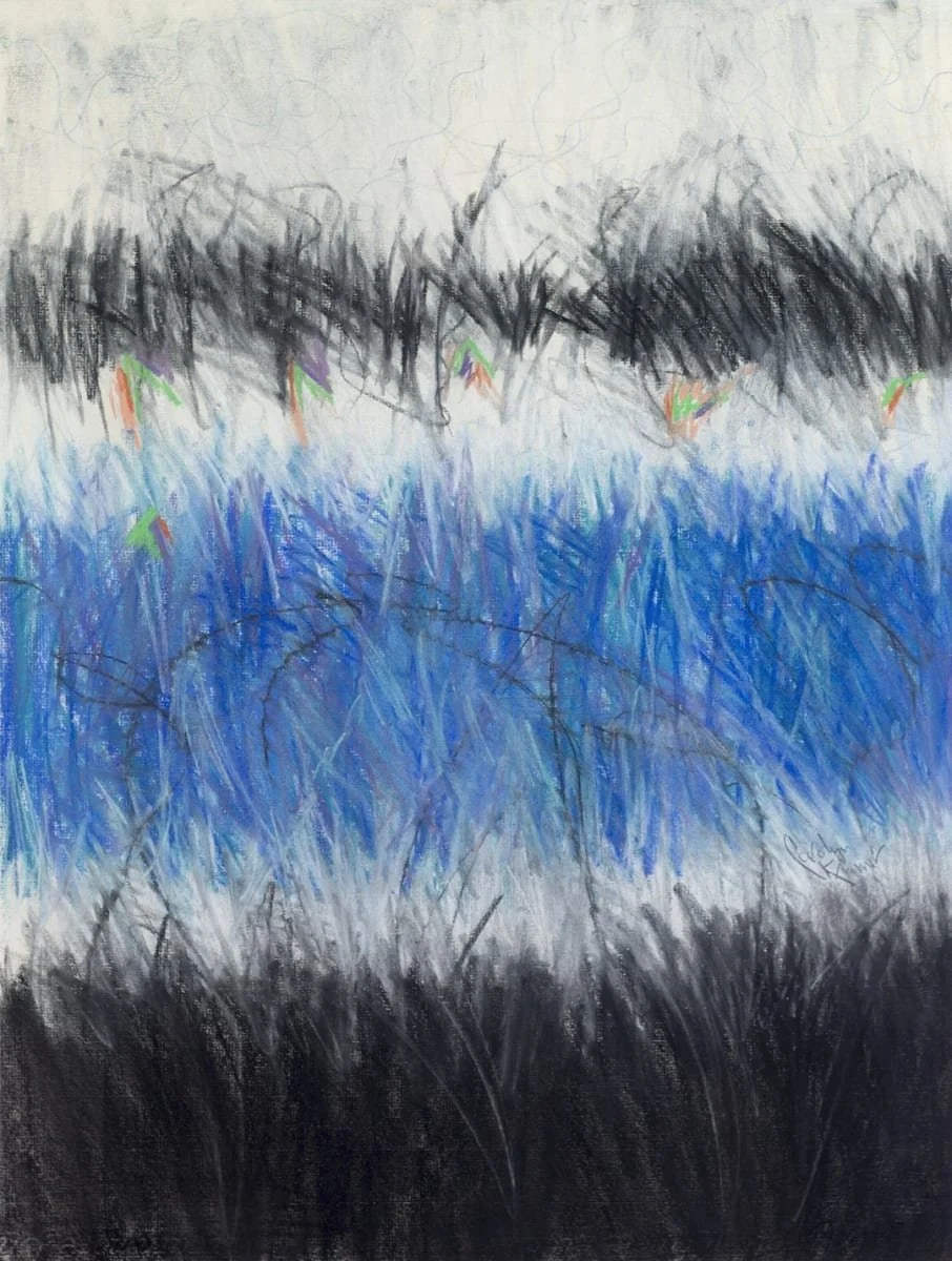 Microscopic patterns in tide marks, colors of sea grasses & land strata inspire my art work, as I expand earth’s images 1000% onto canvases & paper. Using mediums of chalk pastel, oil encaustic, acrylic paint & gold leaf; artworks are rich with painterly textures, layers of color on color & whimsical washes.