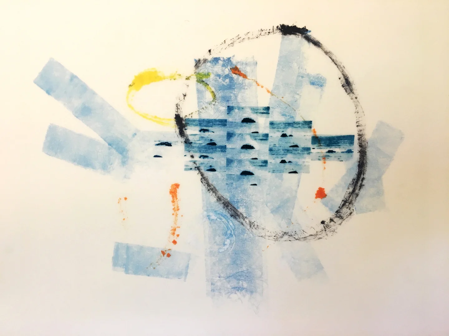 taking pictures of fields of daisies, Japanese Beetles, dew on the grass. Later I had a series of explicit dreams . In the dreams, the photographs I had taken arrived in collaged compositions that actually had a form content relationship. I was not an artist at the time, nevertheless I printed and cut the photos, ( pre Photoshop ) into these compositions. Recently I decided to return to work with those images. After wasting a lot of paper and telling my self to keep trying to get the technique right, I produced these lithographs.