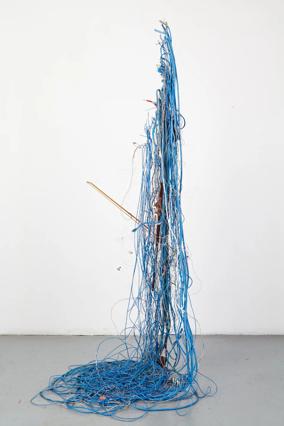 I make mixed media drawings, sculpture, and installations, which are composed of recycled materials including copper wire, electrical wire and components, and found objects. Drawing is always essential and fundamental for my creative process. Electrical wire and components are my preferred materials. Their function to harness electrical power and transform its potential, bending it