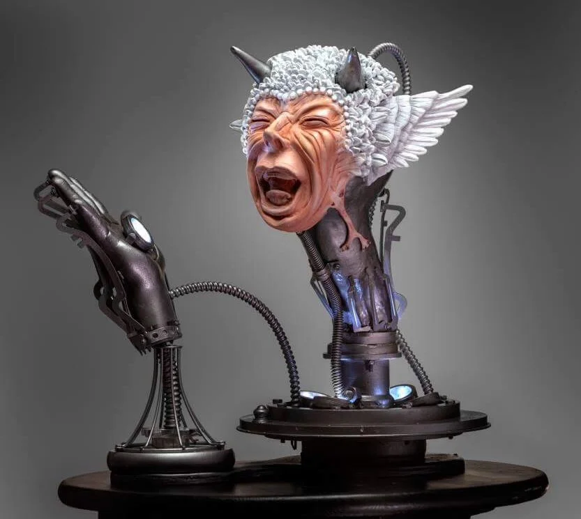 influences of working with Cirque du Soliel, Mike has moved to Kinetic, Assemblage sculptures.