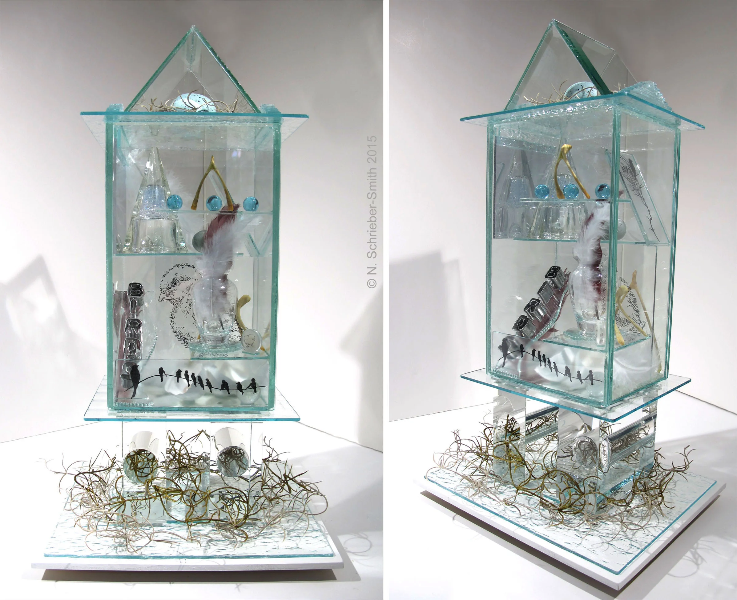 My glass assemblages are a celebration of my multidisciplinary explorations resulting in a new sculptural approach to working beyond the traditions of studio (hot) glass and beyond the traditions of glass as a functional craft.