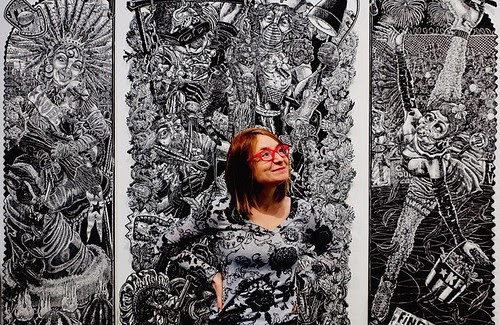 Over the past decade, artist Lorraine Triolo has walked the corridors of art fairs, gallery openings and other art world events around the globe. It was at those events where she developed an eye for seeking out attendees and photographing them posed with large art works. The results are uncanny, unexpected, almost magical images. Triolo now shares over 100 of these unique images of people mirroring, mimicking or disappearing into the art works with the book People Who Look Like Art. Her serendipitously-dressed subjects include artists and art world luminaries mixed with mostly ordinary civilian enthusiasts, all of whom share a unique sense of style and a desire to be part of the event.